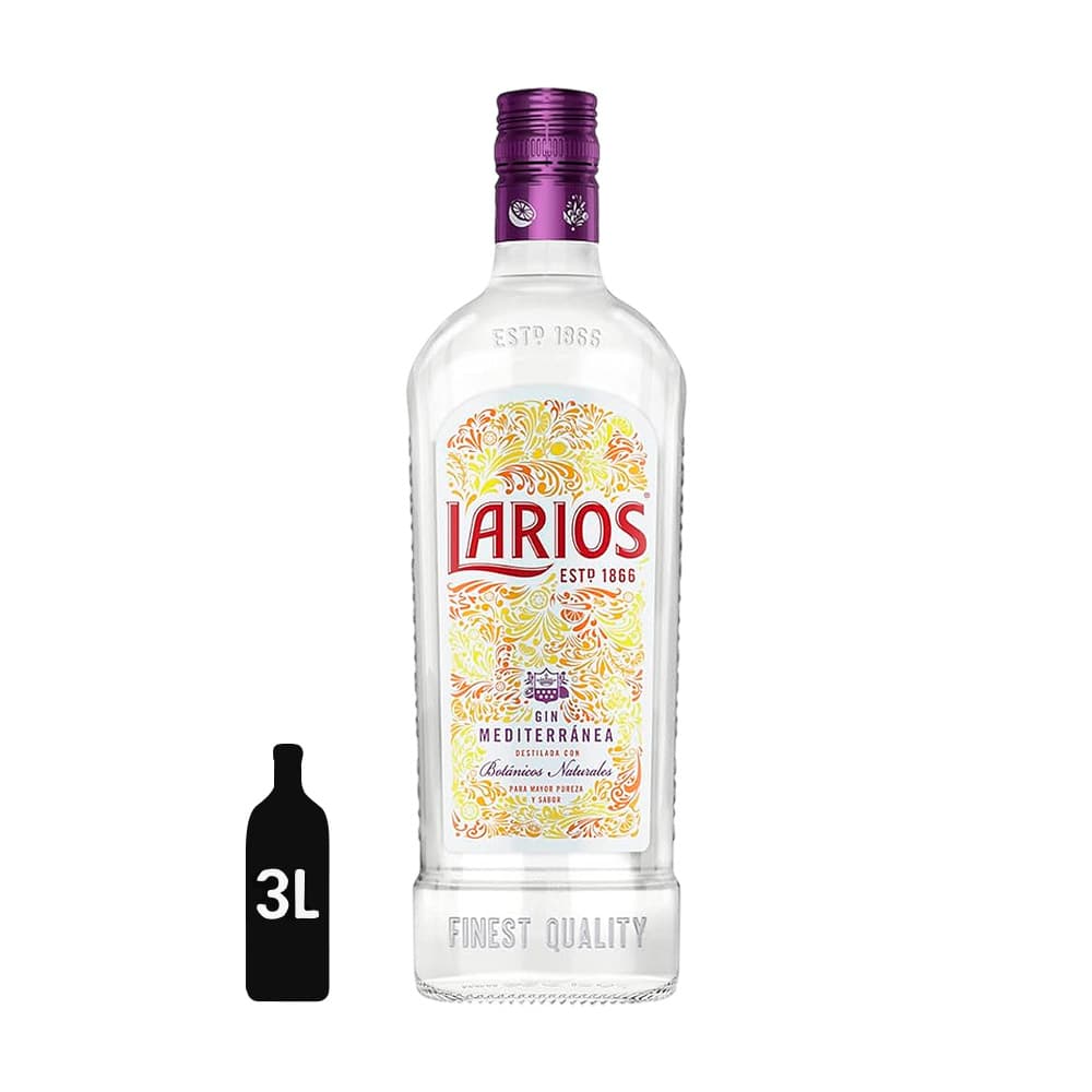 Larios Dry 3 litros es la ginebra mediterránea por excelencia, destilada con enebro salvaje, cítricos y botánicos naturales. Un clásico versátil, fresco y equilibrado, ideal para cócteles y gin tonics.